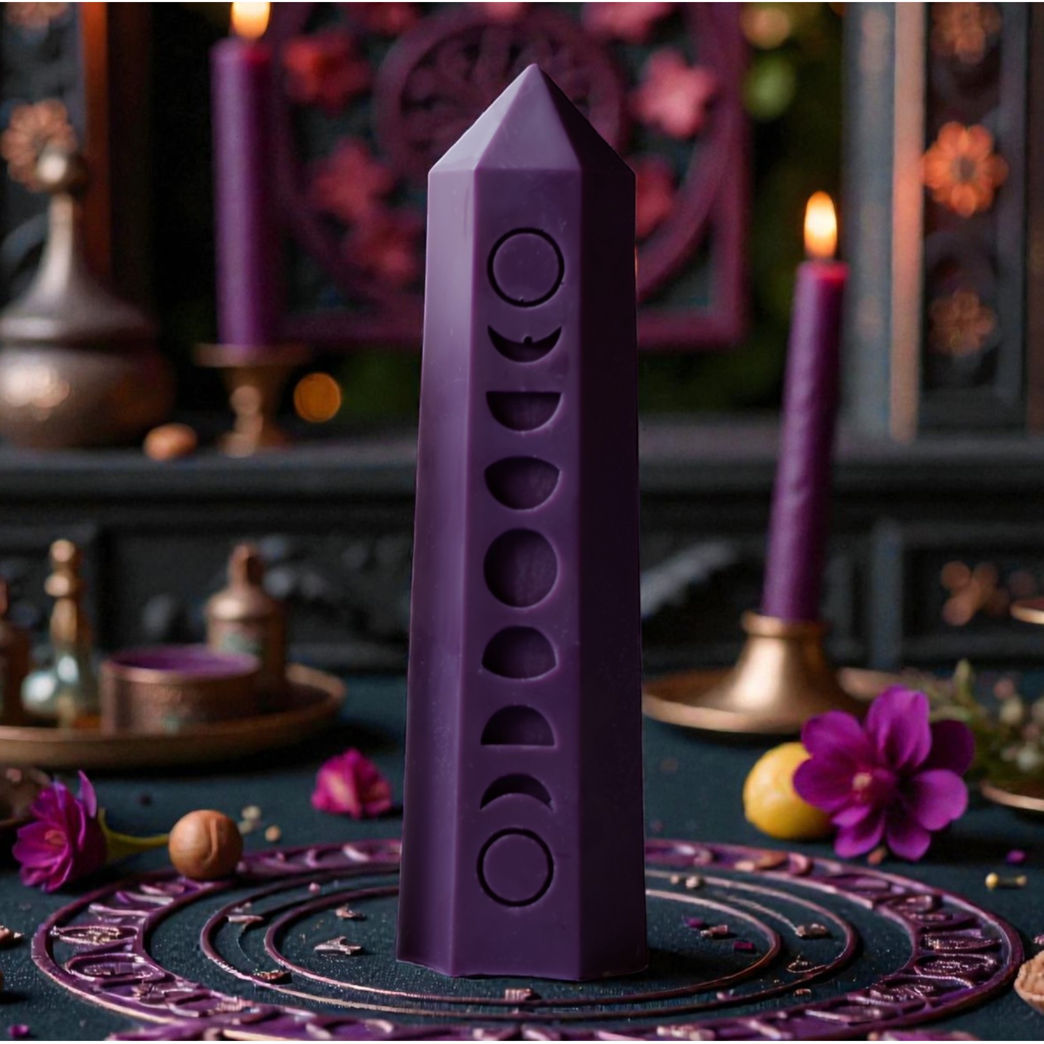 Kryształ z fazami księżyca ma następujące wymiary gotowego wyrobu (świeca):Waga: 110 g / 3...
