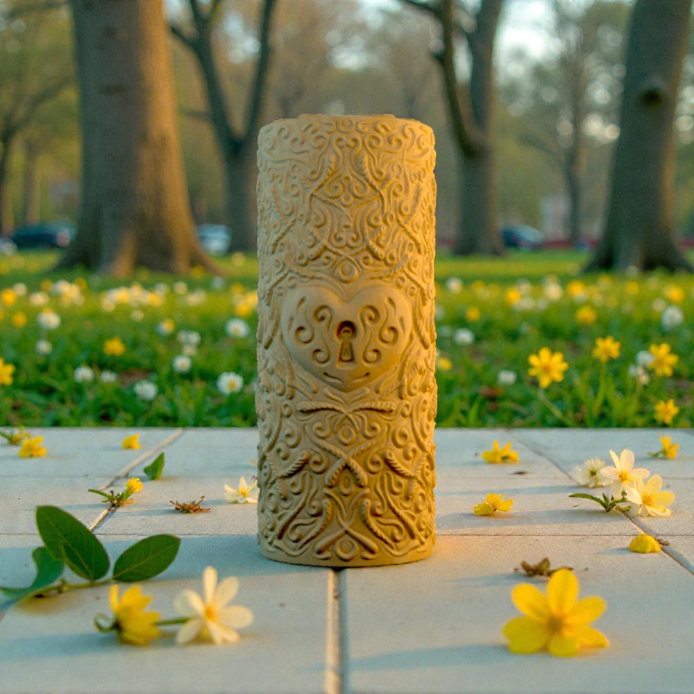 Jeśli szukasz eleganckiej formy z historią, ta forma do świec słupkowych łączy barokowy ornament z motywem serca i klucza. Daje efekt jak forma do świec w stylu vintage, a jednocześnie pasuje do klimatu forma do świec w stylu wiktoriańskim — dekoracyjnie, „dorośle”, bez przesady. To także forma do świec dla zakochanych: z jednej strony serce-zamek, z drugiej klucz, więc gotowa świeca wygląda jak mały symbol z przekazem. Jako forma serca i forma serce i klucz świetnie sprawdza się na prezenty, sesje zdjęciowe i domowy klimat. Kształt jest wysoki i stabilny — typowa forma cylindryczna do świec, idealna jako forma do świec słupkowych z wosku. Dla sezonu romantycznego działa też jako forma do świec walentynkowych i praktyczna forma na Dzień Zakochanych. Dzięki wygodnemu nacięciu to niezawodna forma do wyrobu świec, a elastyczny materiał sprawia, że to porządna silikonowa forma do świec. Najładniejsze detale wychodzą, gdy użyjesz jej jako forma do świec z wosku pszczelego.